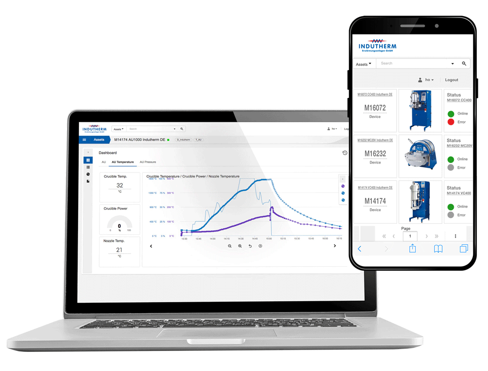 Alternativ steht wie oben aufgezeigt eine lokal bzw. im Unternehmensnetzwerk installierte Lösung zur Verfügung: „IThermControl“ bietet ähnlich wie die Cloud-Lösung eine automatisierte Darstellung der aktuellen Anlagenzustände und der Prozess-History. Kontaktieren Sie bitte für weitere Informationen Herr Jan Hofmann ho@indutherm.de