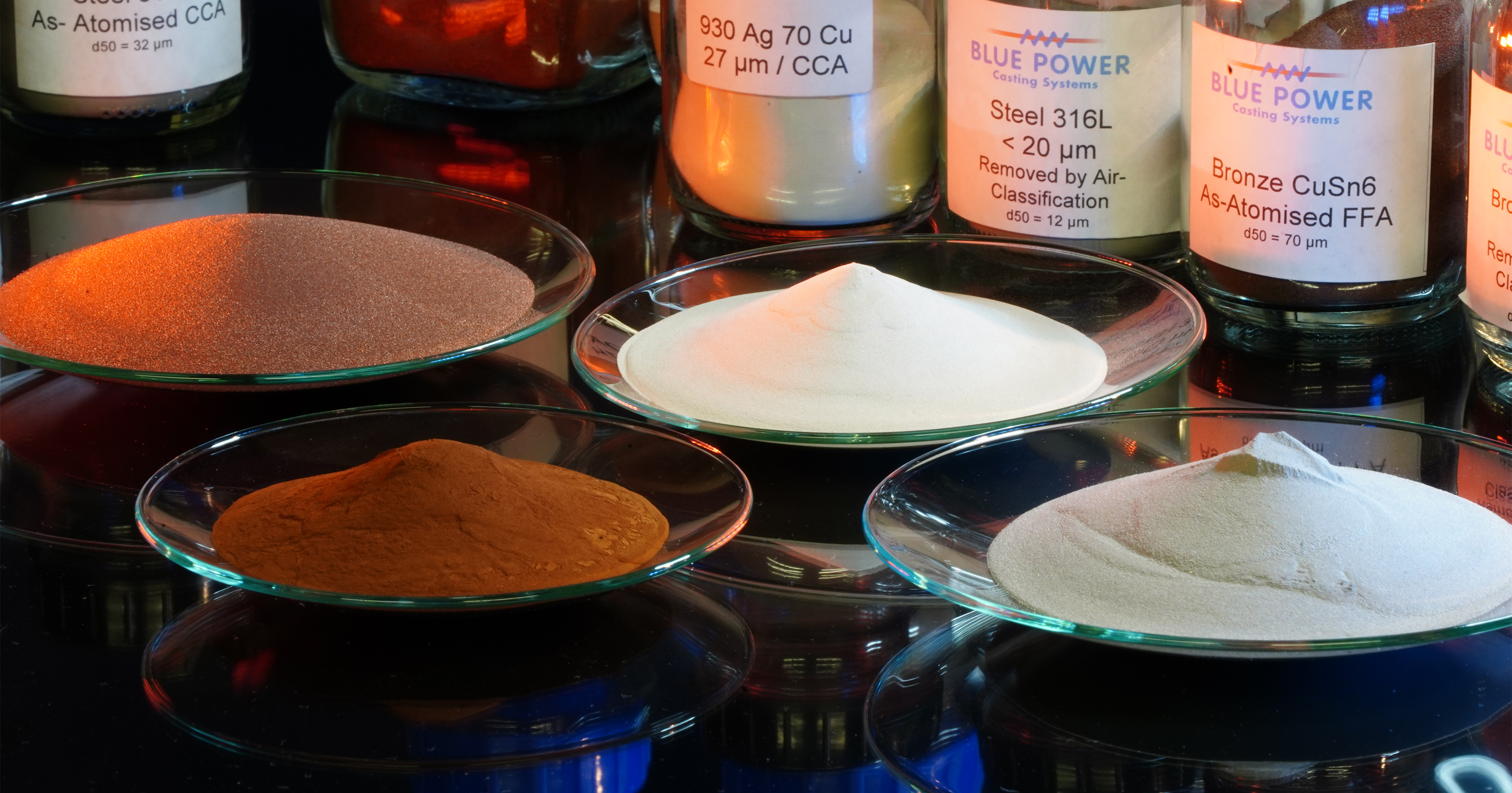 Our gas atomizers produce spherical, flowable metal powders with mean particle sizes between ~1 and 200 µm for e.g. additive manufacturing, soldering or foam sintering processes, as well as MIM and other powder metallurgy procedures.