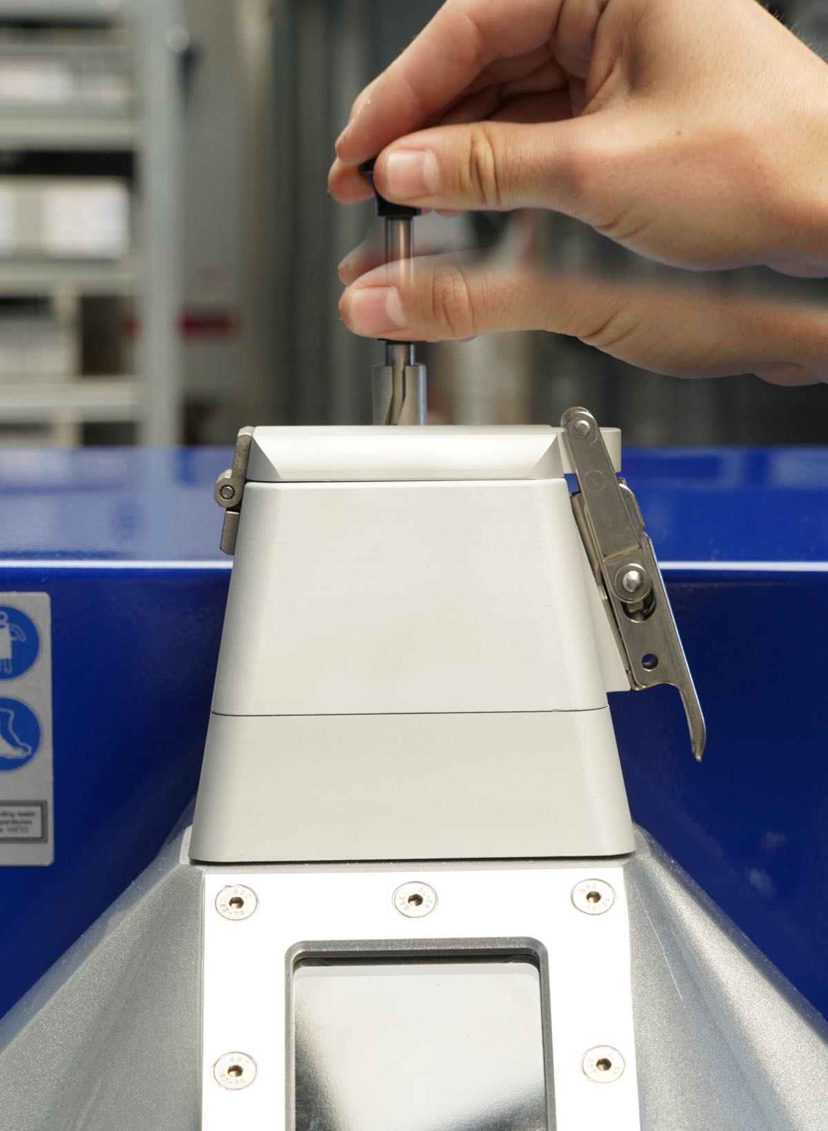Therefore, we use a die cooler that cools down the material below solidification point. The so-called drawing unit consists of a microprocessor-controlled motor that pulls out liquid material in programmable steps. The drawing time, the stop time and the optional reverse time are variable.